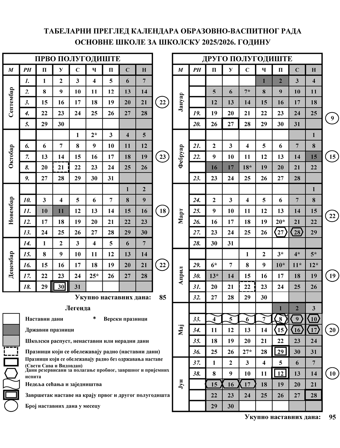 Календар образовно-васпитног рада за школску 2025/2026. годину садржи распоред почетка и завршетка наставе, распусте, празнике, дане без наставе и друге значајне датуме током школске године.